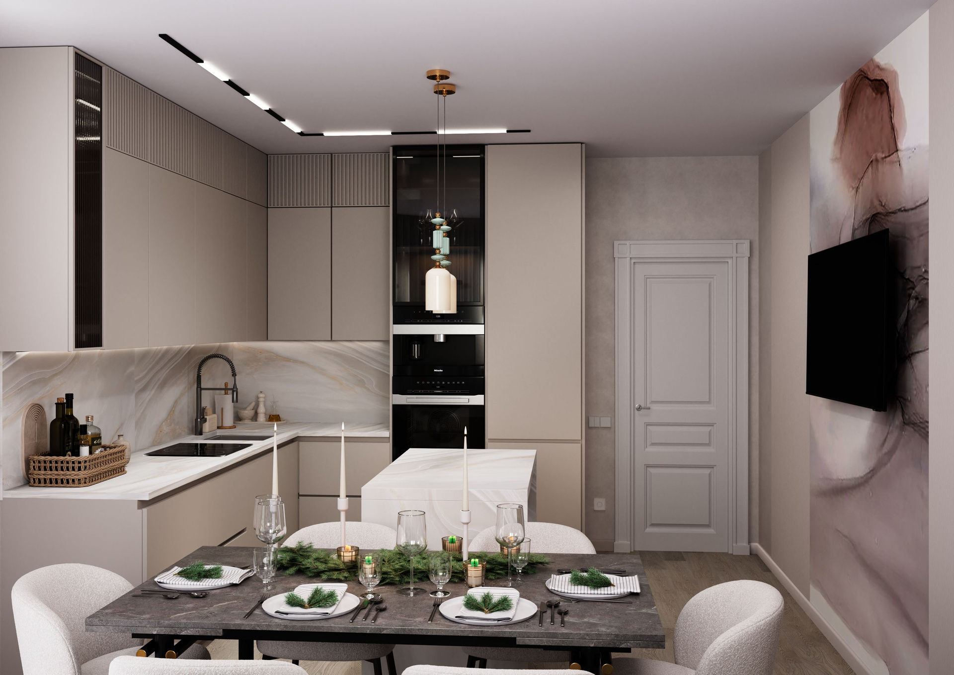 Квартира с фисташковой кухней для молодой девушки г. Москва